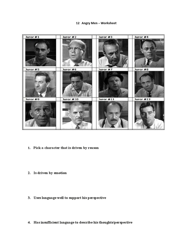 12 Angry Men Character Chart. Characters, Summary, analysis, 12 Angry Men Character Chart 1
