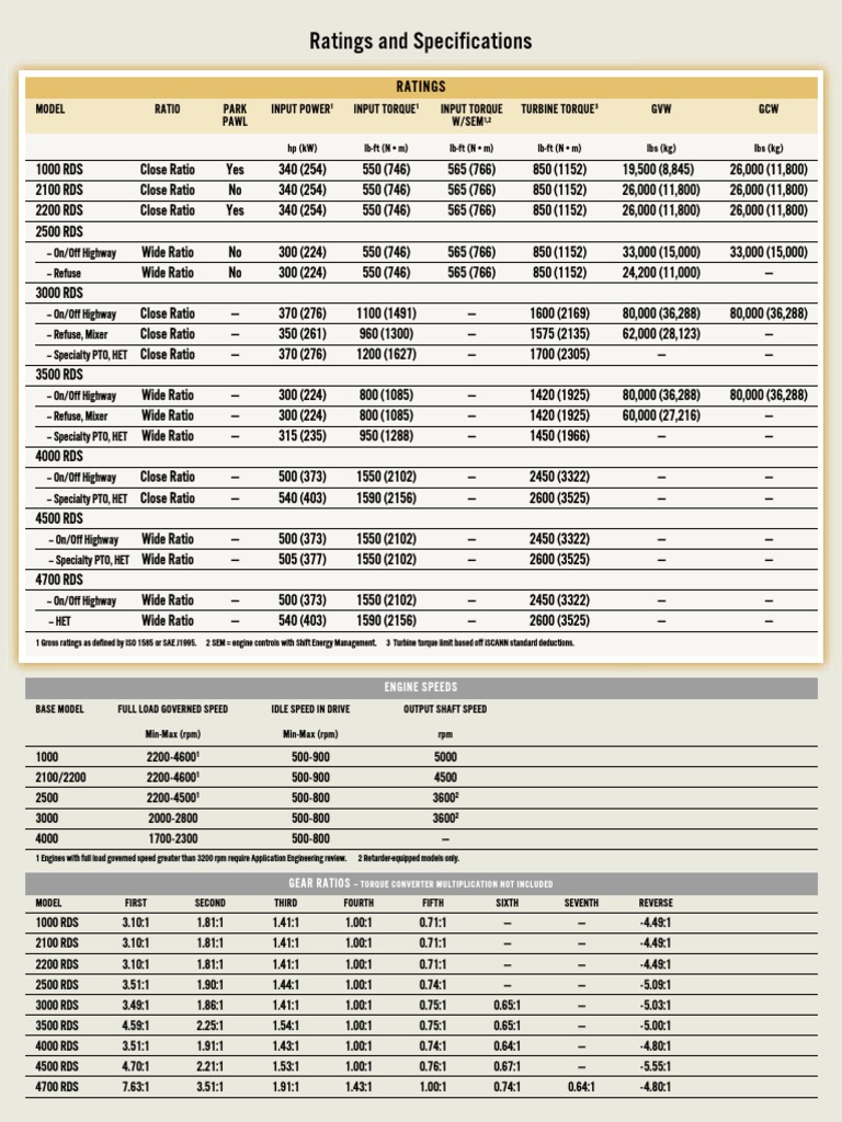 Ratings and Specifications Allison Transmission PDF Transmission (Mechanics) Automotive
