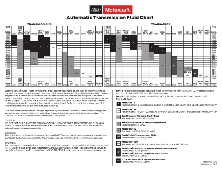 Transmission Fluid Type Chart A Visual Reference of Charts Chart Master