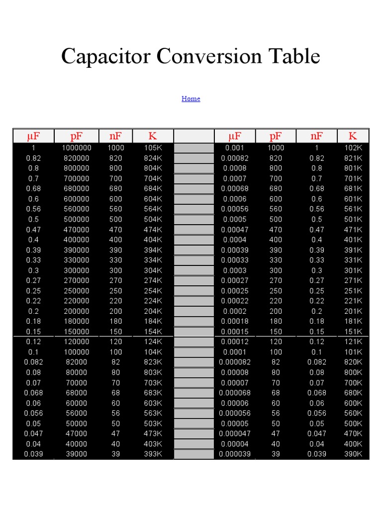 Capacitor Value Conversion Chart Capacitor Conversion Chart