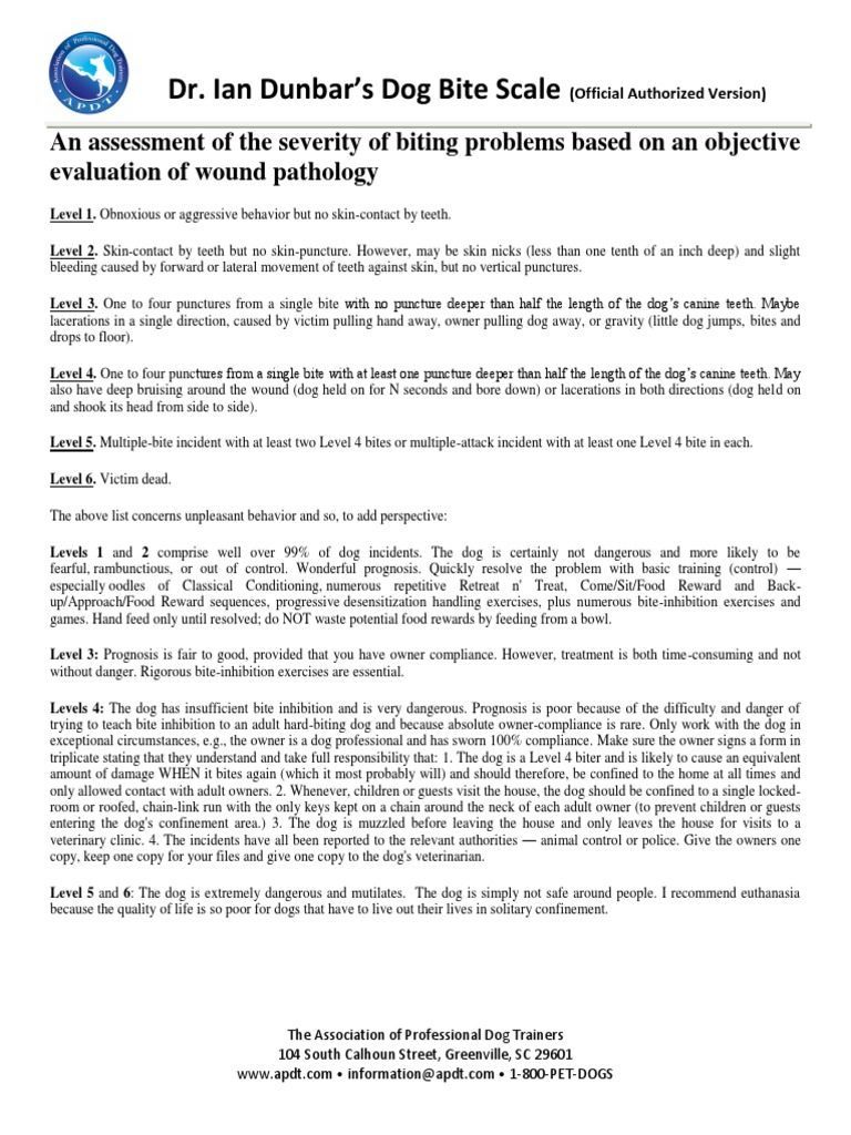 The 6 Levels of Dog Bites The Dunbar Bite Scale