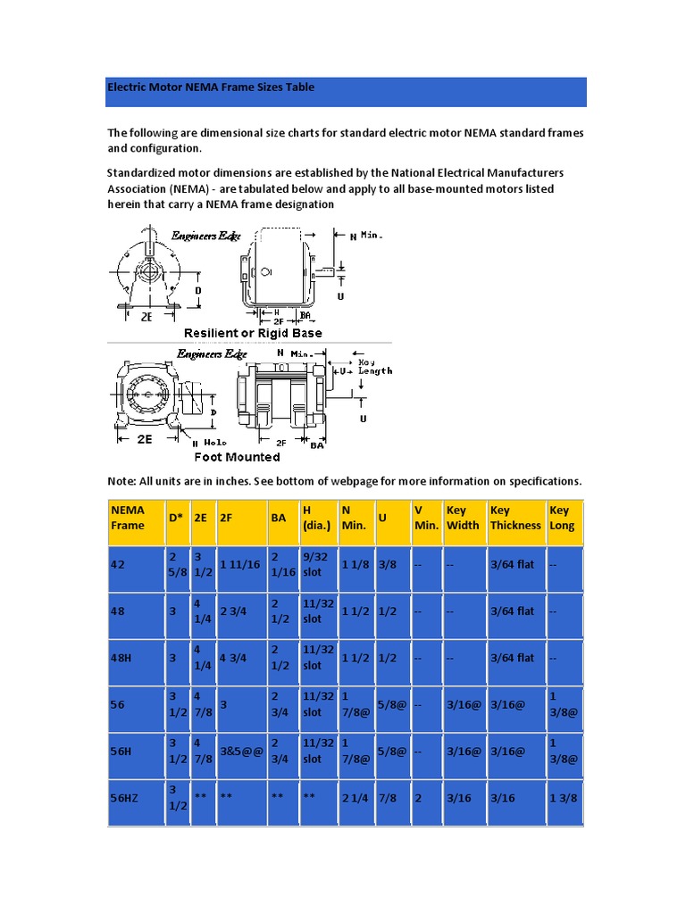 Electric Motor Nema Frame Sizes Table Design Talk