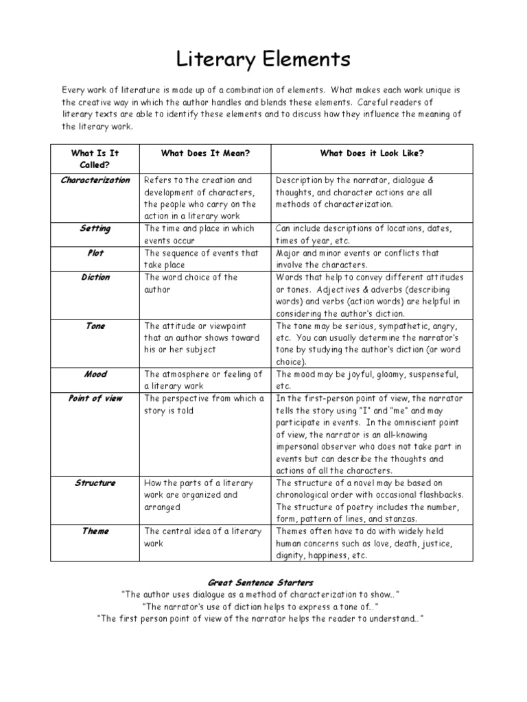Elements Of Literature Chart