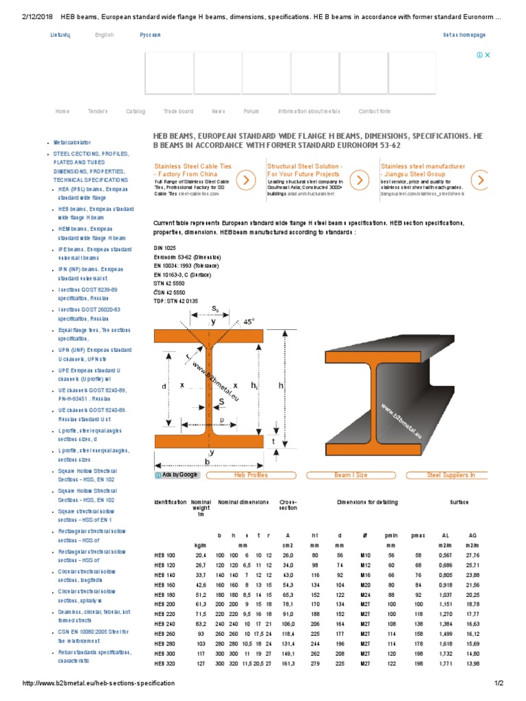 HEB Beams, European Standard Wide Flange H Beams, Dimensions, Specifications PDF Beam
