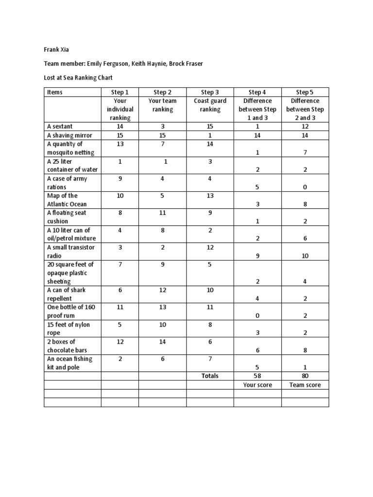 Lost at Sea Ranking Chart For Information About TeamBuilding Exercises Problem Solving and