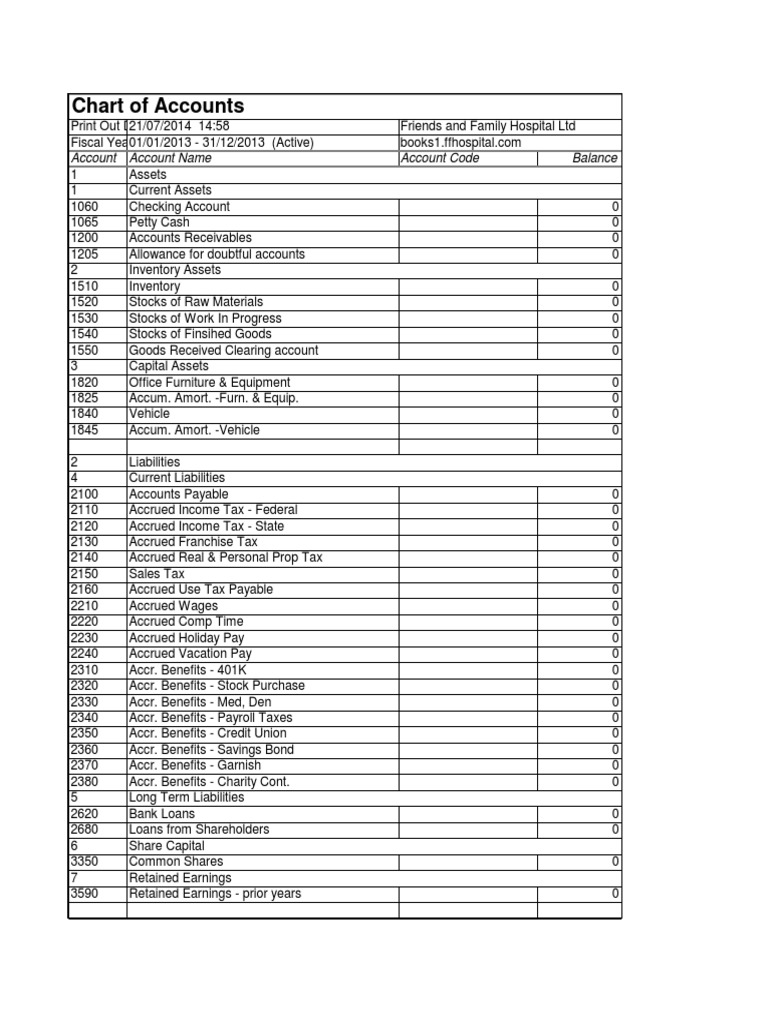 Chart Of Accounts Complete List With Descriptions