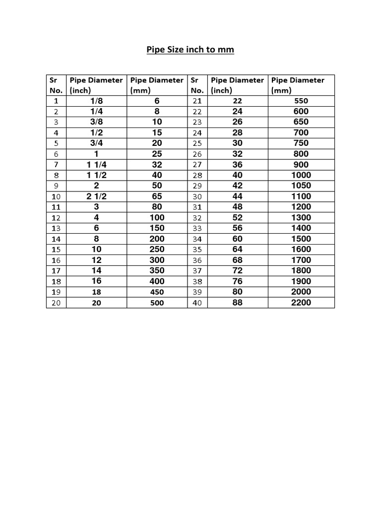 Standard Pipe Sizes In Mm And Inches at Evan Olsen blog
