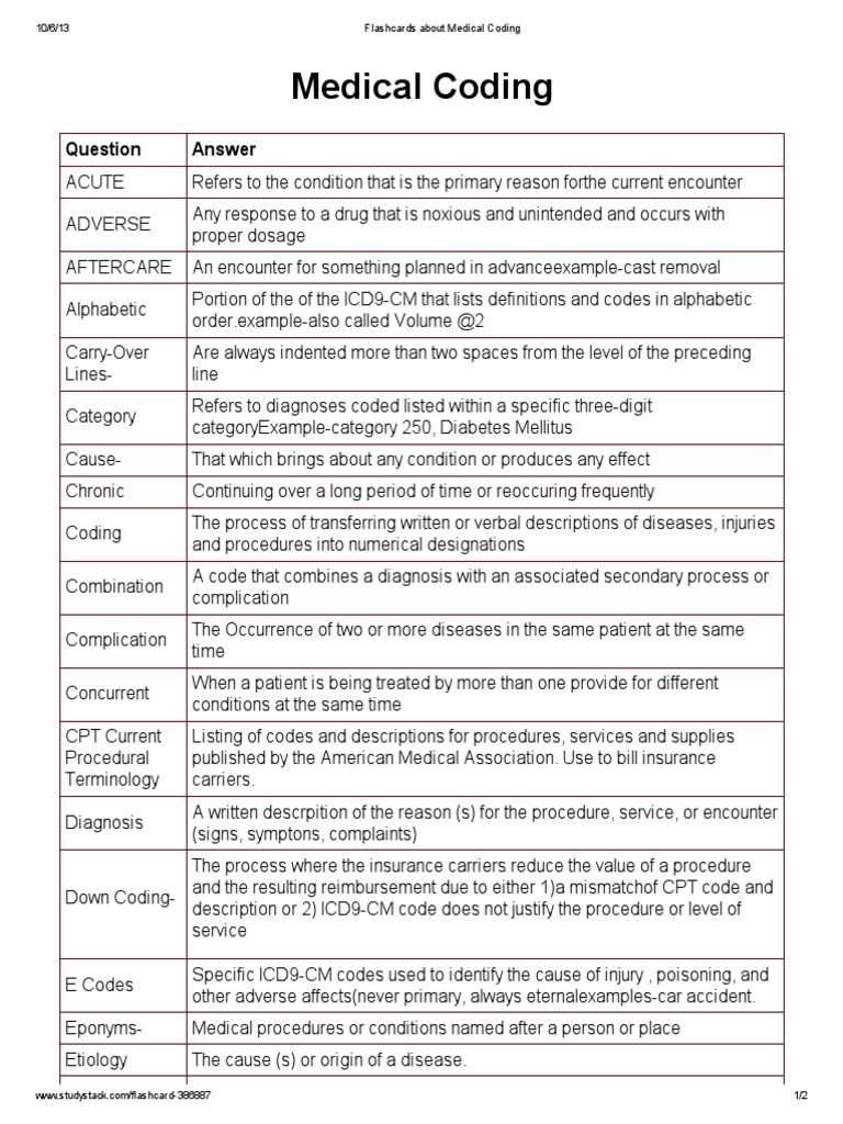 Flashcards About Medical Coding International Statistical Classification Of Diseases And
