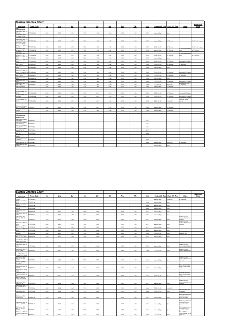 Subaru Transmission Chart