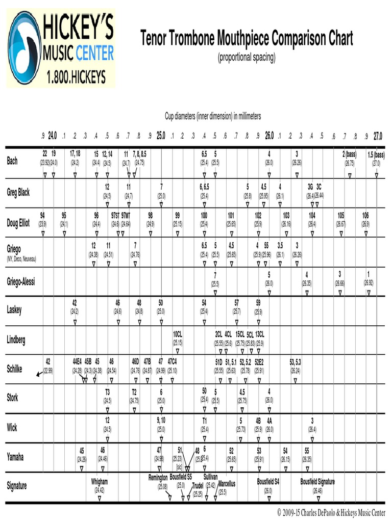 Tenor Trombone Mouthpiece Comparison Chart (Proportional Spacing) PDF Elements Of Music