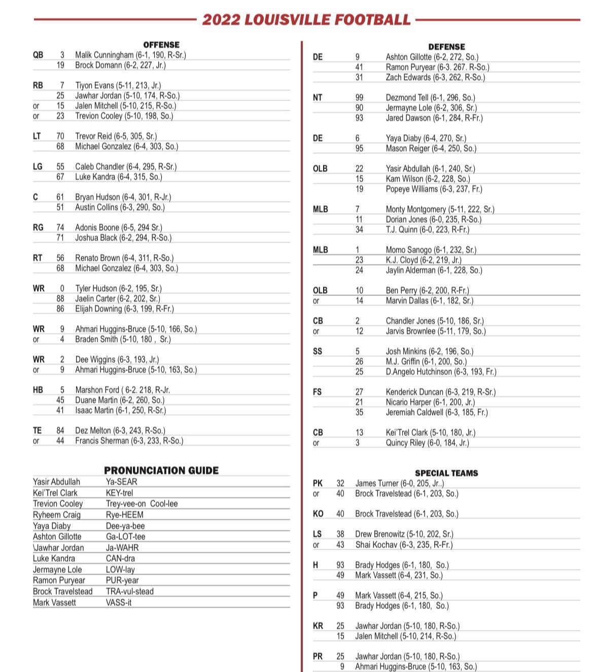 Louisville football unveils first depth chart for 2022 Card Chronicle